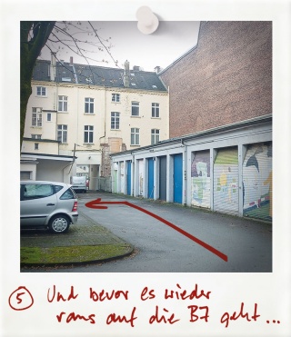 Das Tor zur B7 ist in der Regel abgeschlossen. Bitte benutzt den Zugang über den Hof!